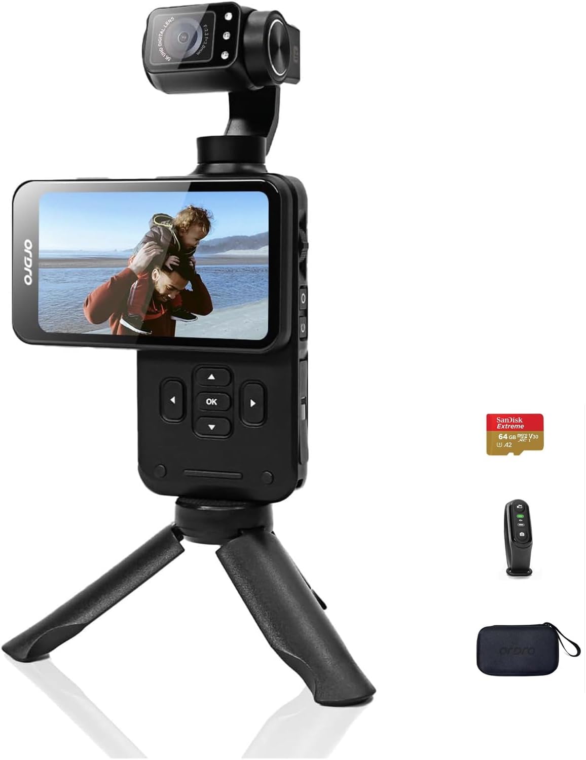 ORDRO M5 Handheld Set mit 3-Achsen-Stabilisierung, tragbare WiFi Vlog-Kamera mit IR-Nachtsicht, 120° Weitwinkel und Gesichtserkennung für YouTube