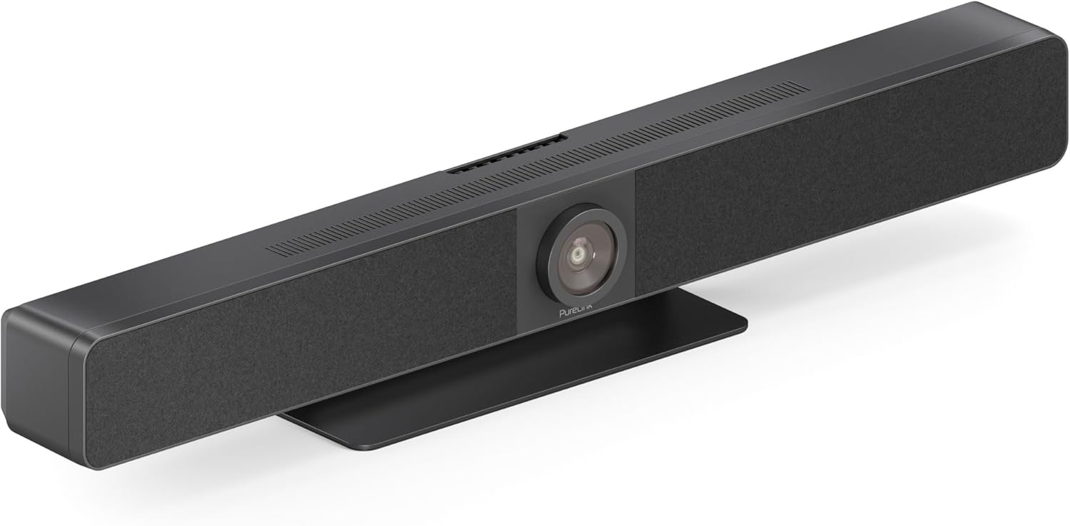 PureLink Vuelogic Videobar mit AV Hub, 4K Weitwinkel (120°), 5X Zoom, Auto Framing, 4 MEMS Mikrofone, HiFi Stereo, Bildschirmpräsentation über USB-C und HDMI, Plug-and-Play für Zoom, Teams und mehr