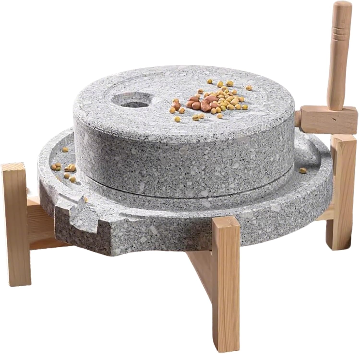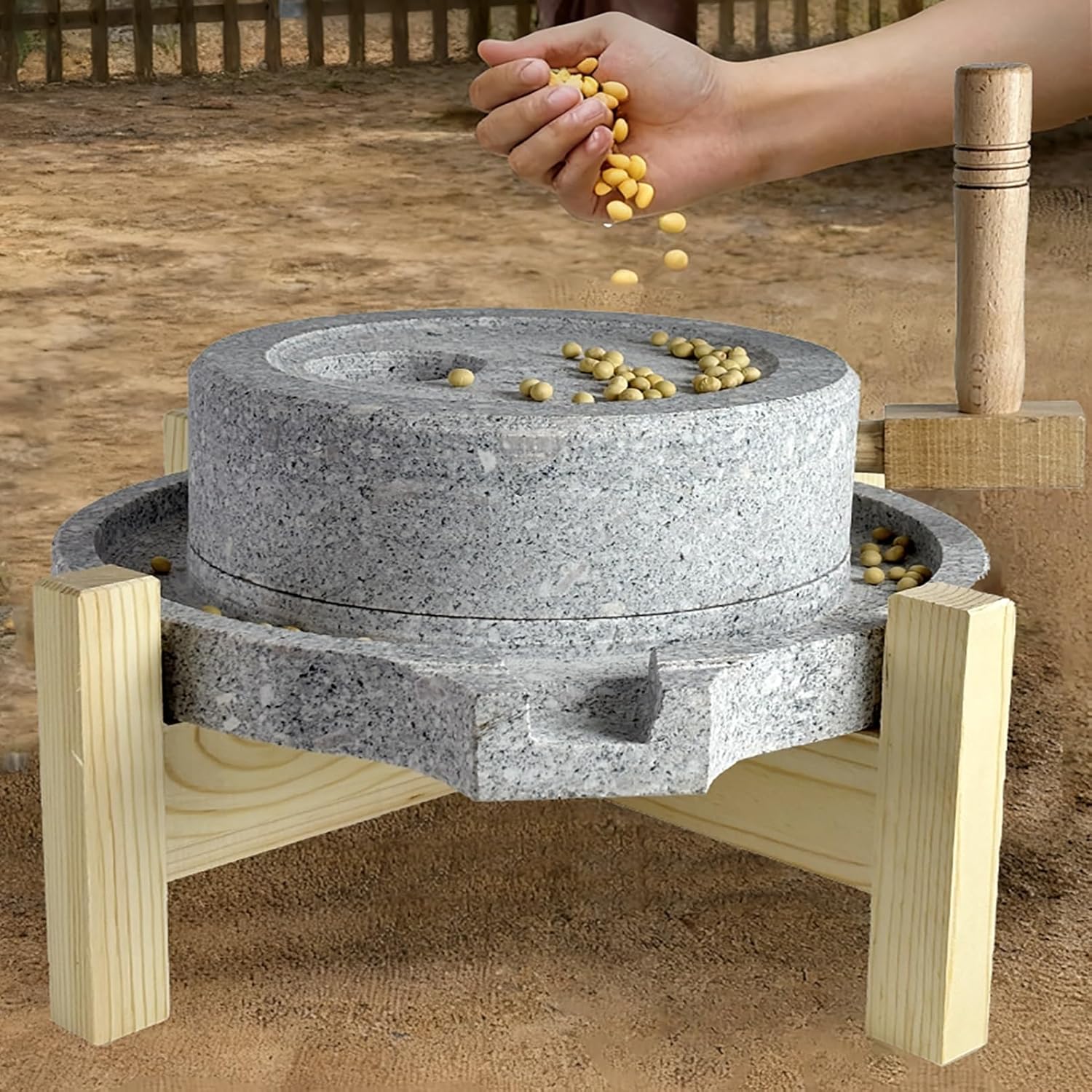 Manuelle Steinmühle, Handsteinmühle mit Holzrahmen zum Mahlen von Nass- und Trockenfutter, ideal zum Unterrichten und Betrachten