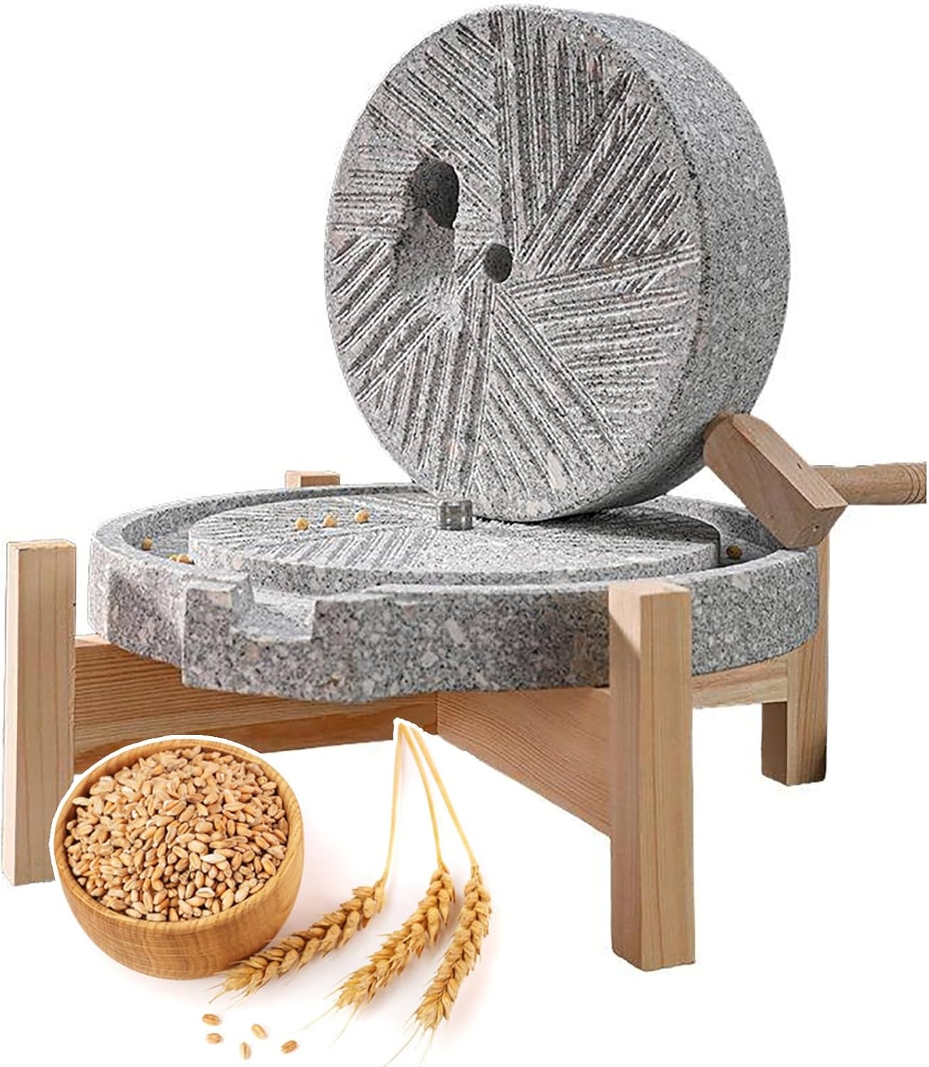 Hand Stone Mill Grinder for Grains, Wheat, Rice, Beans, Spice - Manual Household Kitchen Tool