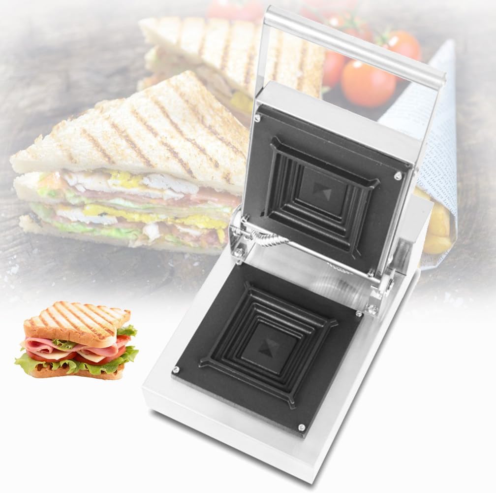 Kommerzielle Sandwich Toaster, 900W Sandwich Press Maker Toaster, Compact Edelstahl Design Cool Touch Schwebender Scharniergriff Antihaft-Platten, Leicht zu reinigen