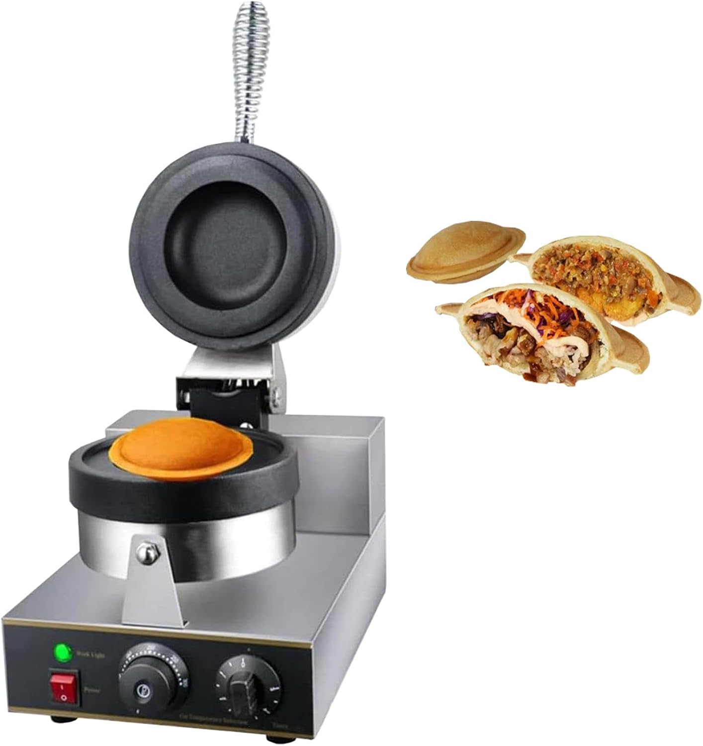 Eiscreme-UFO-Burger-Maker, elektrischer Burger-Waffelautomat, 1,3 kW/2,6 W elektrischer UFO-Burger-Waffel-Eiswaffelautomat, aus lebensmittelechtem Edelstahl für den Heimgebrauch,zum Frühstück(Single)