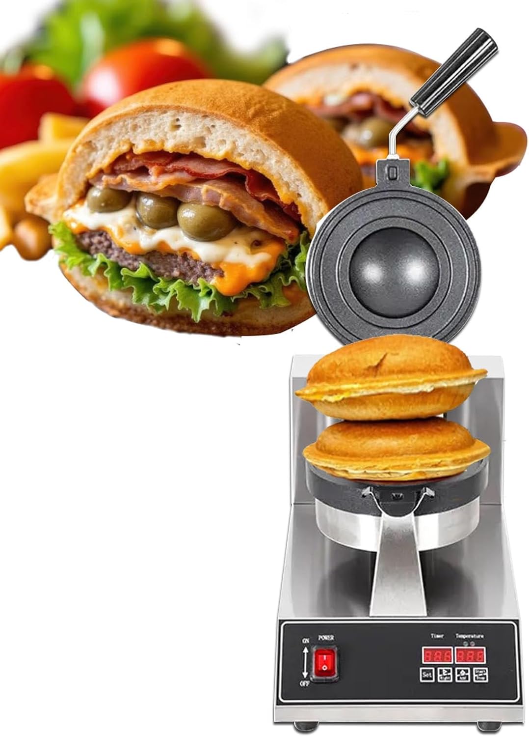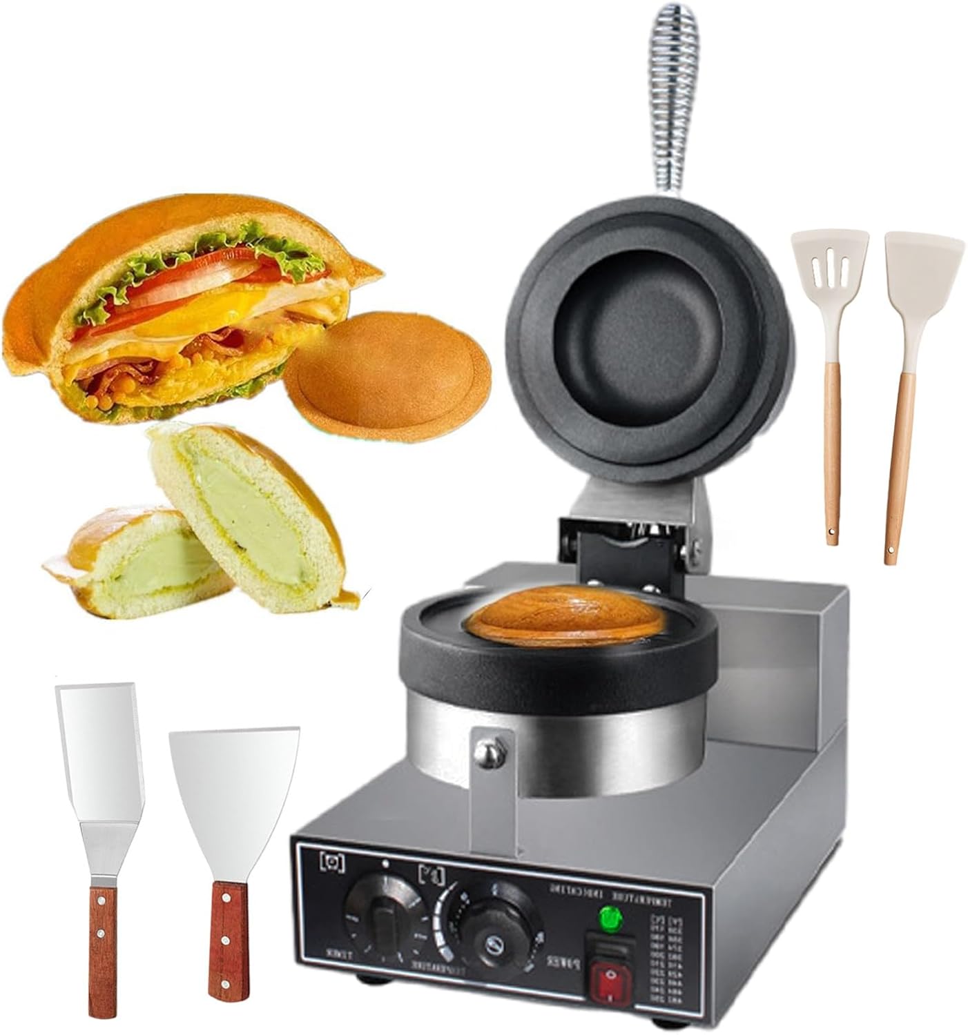 Burger Maker Maschine, Eiscreme Burger Make Electric Waffle Baker - Digitaler Bildschirm, Panini Press Sandwich Maker, Eiscreme Brioche Hamburger Maker, Antihaft-Platten für Bäckereien, Rest