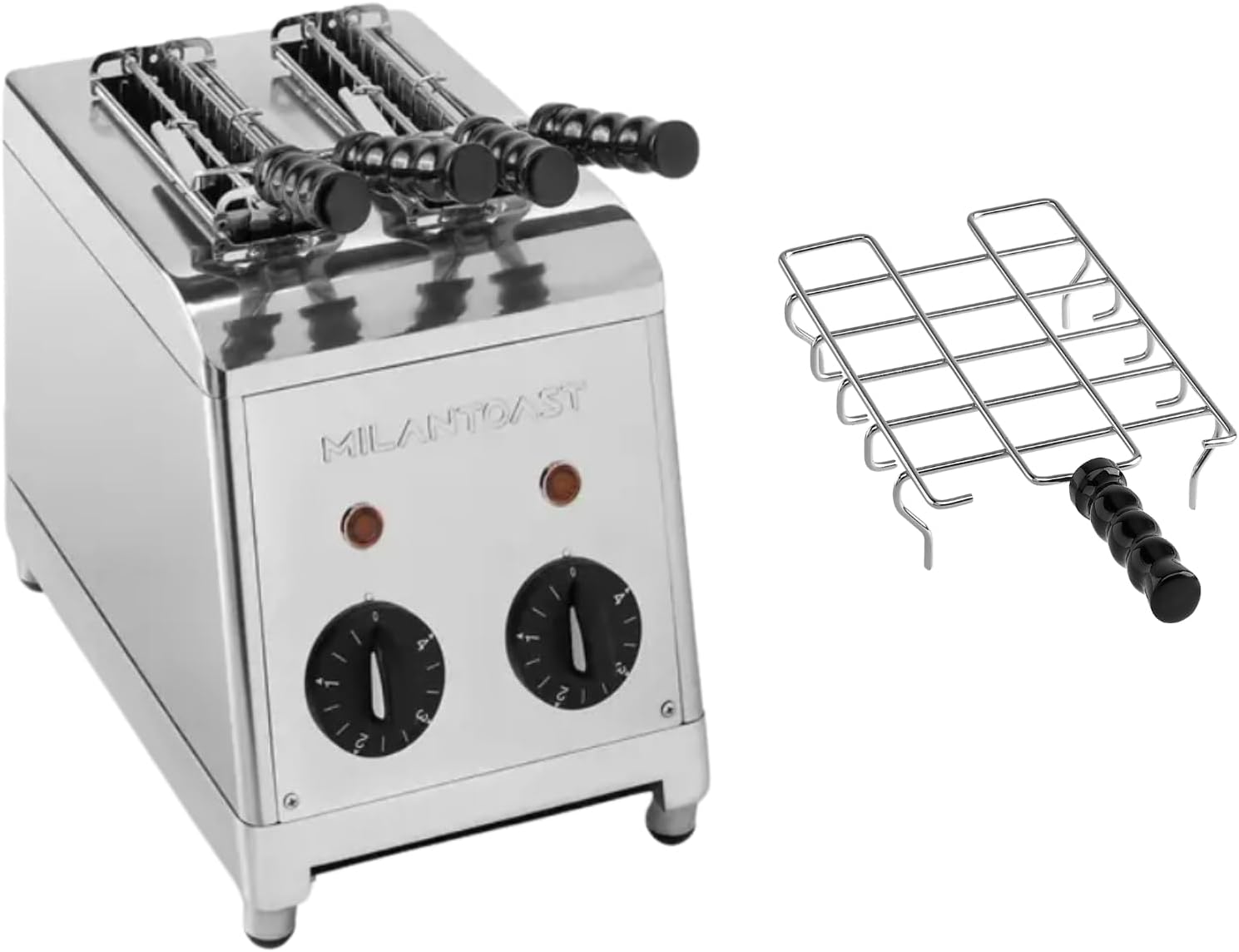 Milantoast 2-er Toaster mit Zangen und Brötchenaufsatz (Edelstahl/Gebürstetes Metall)