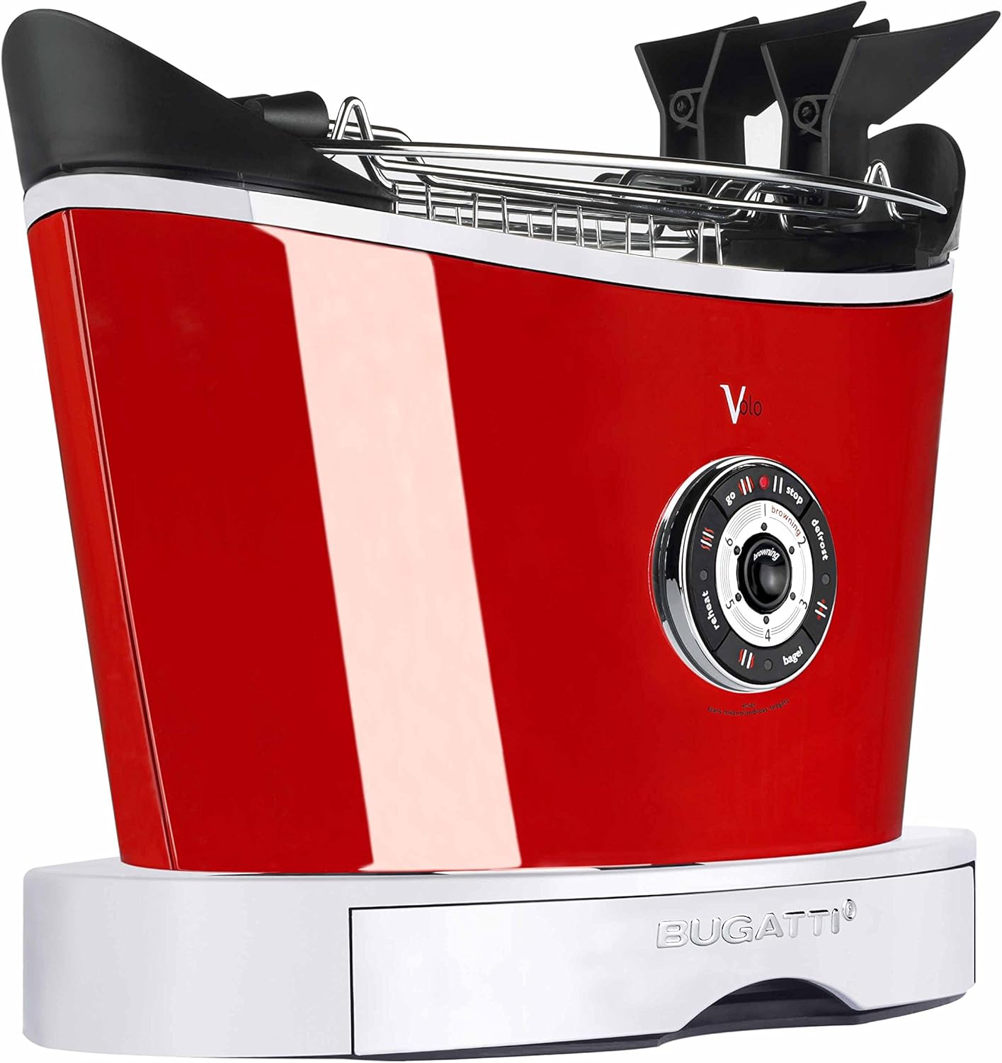BUGATTI, Volo, elektrischer Toaster, Zange enthalten, 4 Funktionen, 6 Toaststufen, innovatives Design, Edelstahlgehäuse, Leistung 930 W (Rot)