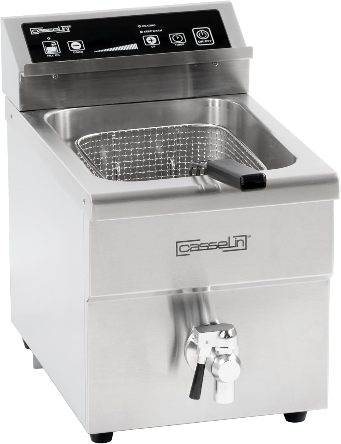Casselin 3611630072991 Induktionsfritteuse 8L mit Ablasshahn, 18/8 Stainless Steel