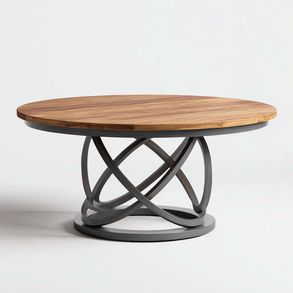 Dieser runde Gartentisch ist für den Einsatz im Außenbereich ausgelegt und eignet sich für Garten, Terrasse oder großzügige Außenflächen. Die runde Tischplatte kombiniert mit dem skulpturalen Untergestell bietet eine ausgewogene Verbindung aus Stabilität und Design.