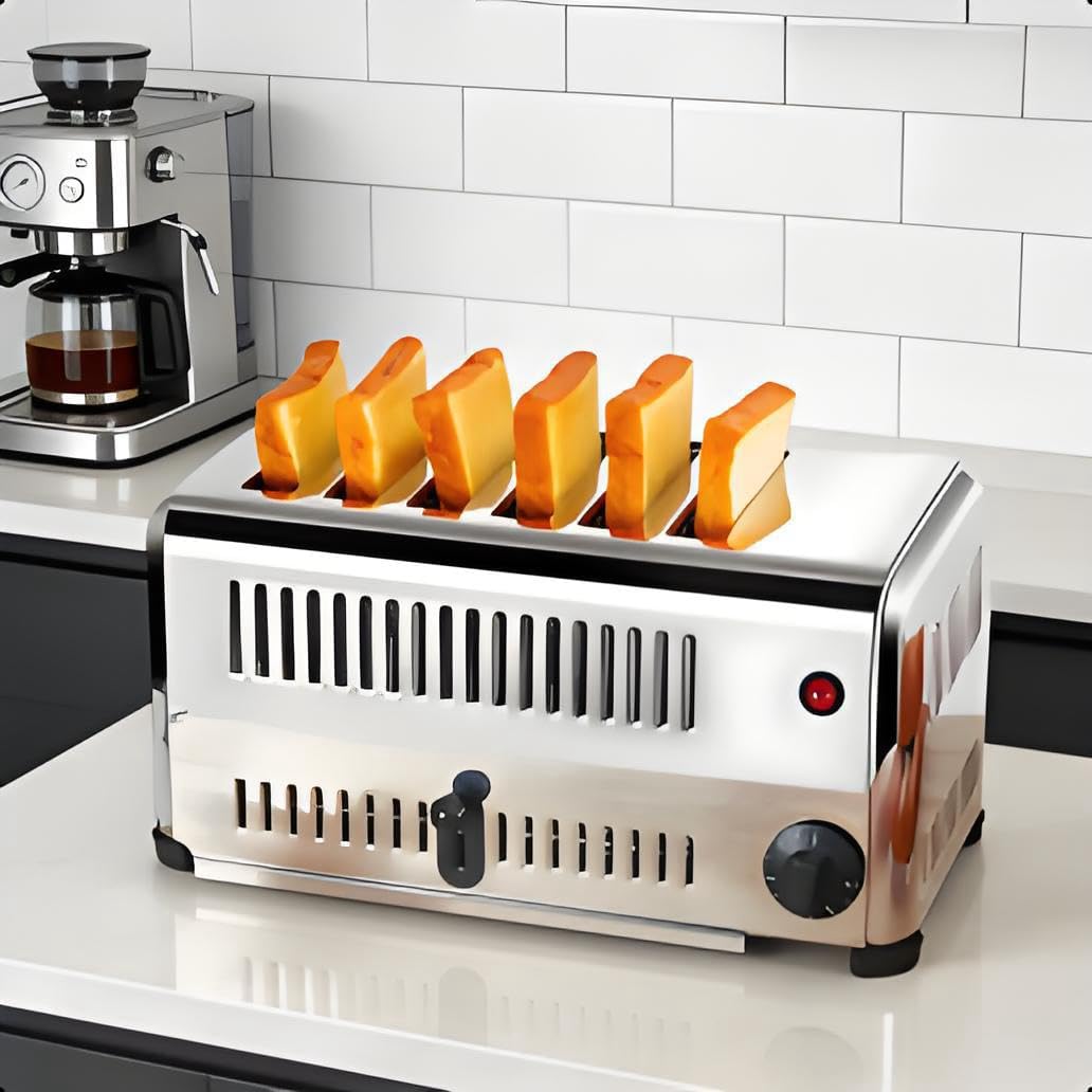Gewerblicher Toaster mit 6 Breiten Schlitzen, Fünf Geschwindigkeitsstufen, Geeignet für Hamburger, Bagels und Normales Brot, Geeignet für den Gewerblichen und Privaten Gebrauch.
