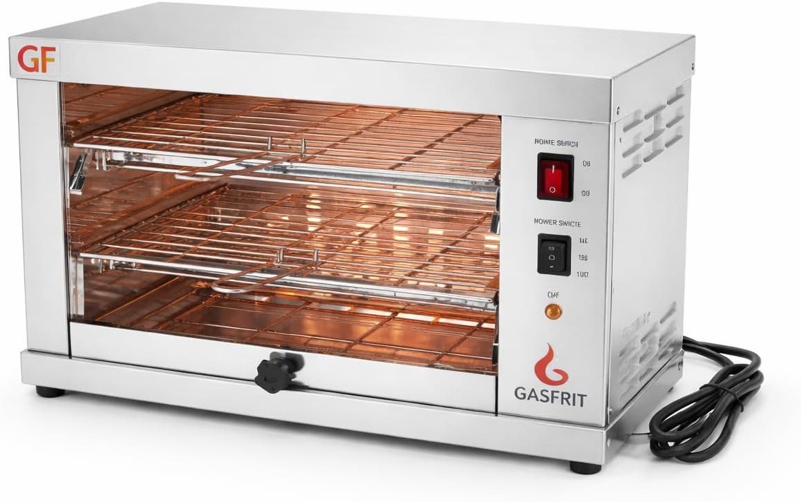 Industrieller elektrischer Quarz-Toaster, 2 Etagen, 3000 W, Edelstahl, Grill und herausnehmbare Krümelschublade, professionelle Verwendung im Gastgewerbe