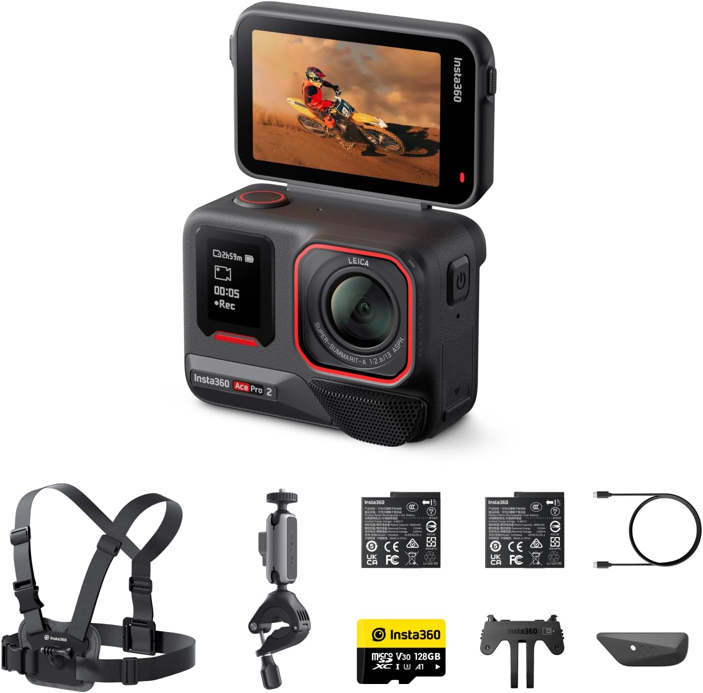 Insta360 Ace Pro 2 Bike-Bundle - 8K wasserdichte Actionkamera mit Leica entwickelt, 1/1,3" Sensor, Dual-KI-Chip-System, führende Schwachlichtleistung, bestes Audio, Flipscreen und KI-Editing