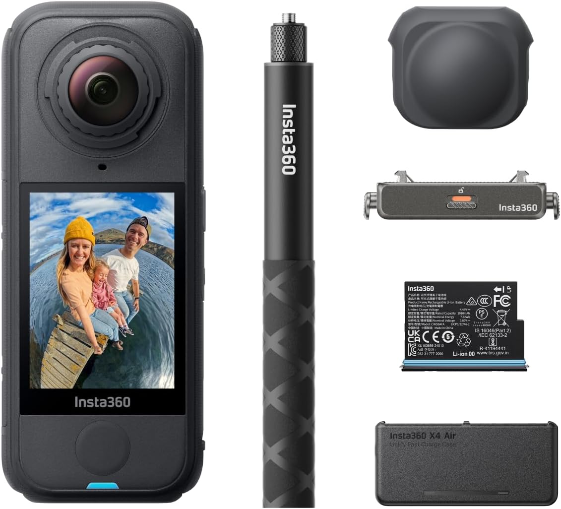 Insta360 X4 Air Essentials-Bundle - 165 g leichte 8K 360°-Kamera, Unsichtbarer Selfie-Stick, Wechsel-Linsen, Aufnehmen und dann ausrichten, integr. Windschutz, FlowState-Stabilisierung, KI-gestützte App
