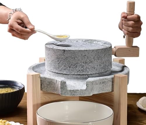 Manuelle handgefertigte Steinmühle, Weizenpastenmühle mit Holzständer, klassische Getreidemühle für den Heimgebrauch