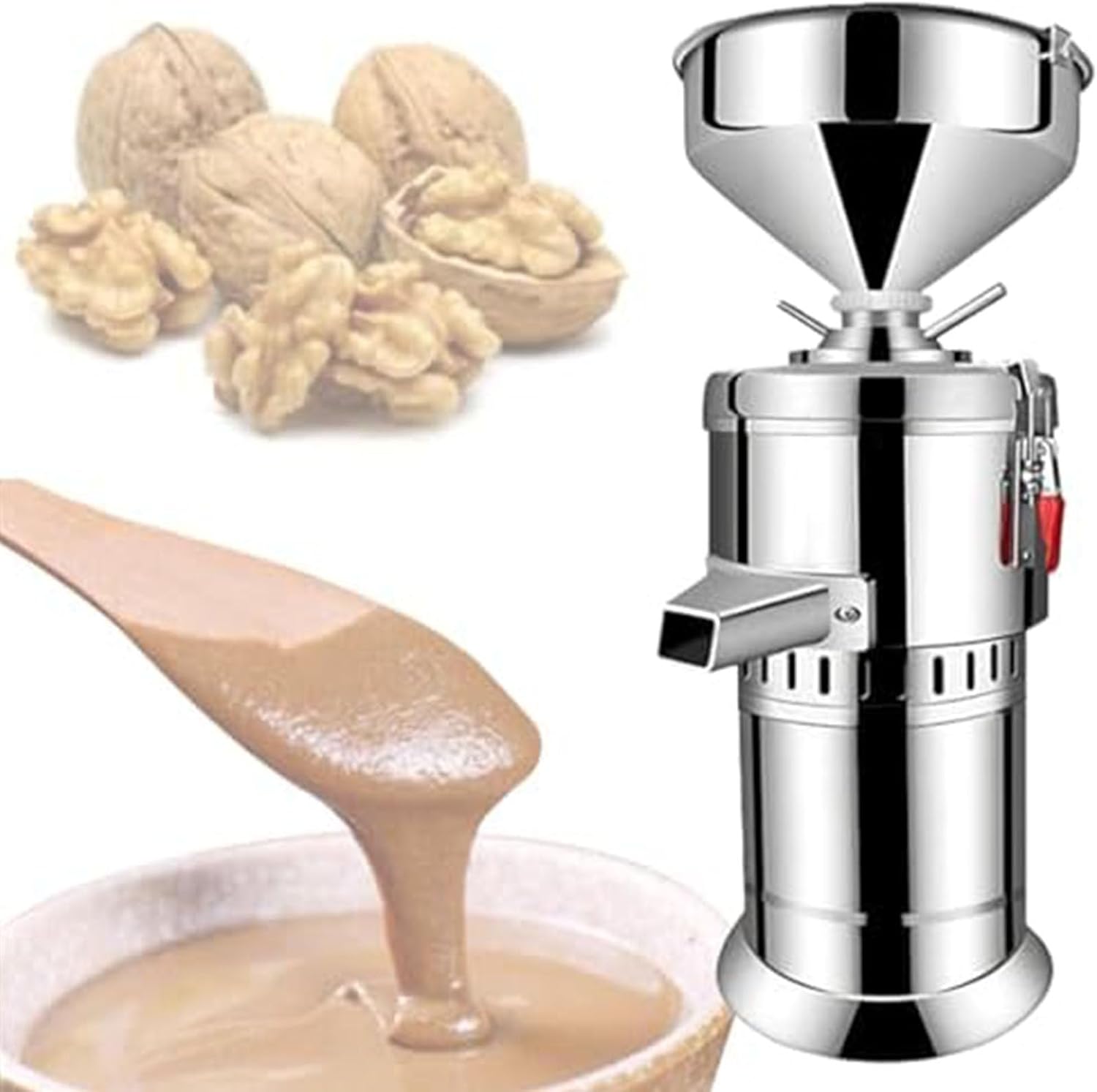 PixCy Kommerzielle Nussmühlenmaschine Aus Edelstahl - 1100W Elektrische Erdnussbutter-Maschine, 15kg/h,Vielseitig Für Nüsse, Getreide, Gewürze - Für Gewerbliche Küchen