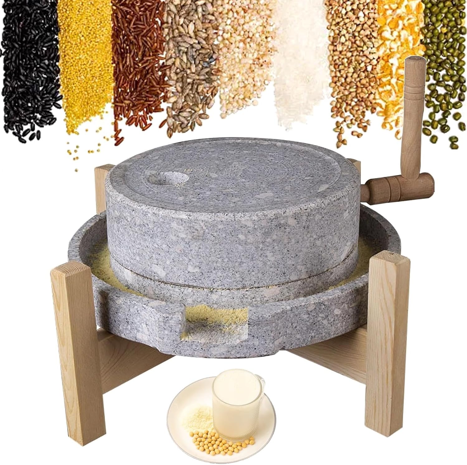 Stein Getreidemühle Handmühle mit Ständer Natur Granit Trockenmühle Nassmühle für Tofu, Sojamilch und Sesambohnen
