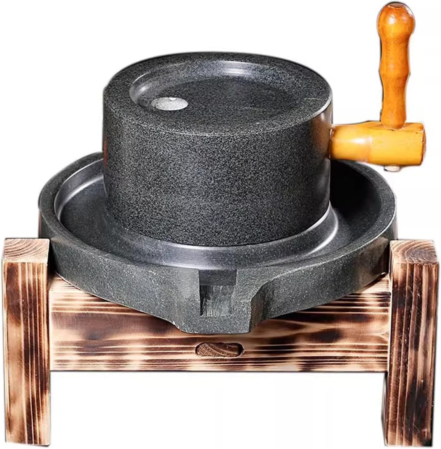 Steinmühle mit Holzsockel und Griff zum Mahlen von Mehl, Brot, Weizen und Gewürzen, leicht zu reinigen, traditionell handgefertigt