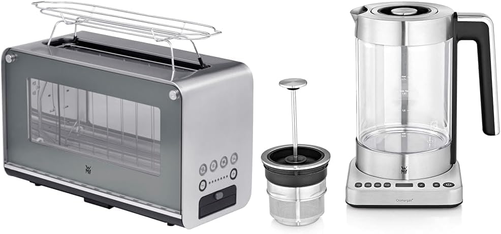 WMF Lono Toaster Glas mit Brötchenaufsatz, 2 Scheiben, XXL, motorisierte Toastaufnahme und Lono 2 in 1 Vario Wasserkocher, mit Temperatureinstellung, 1,4-1,7 l, 3000 W, Teekocher Glas mit Teesieb